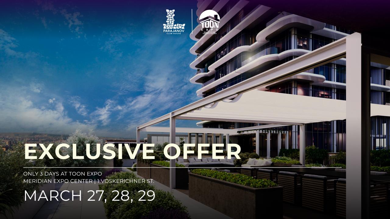 Dear friends, For three days only — March 27–29, within the framework of TOON EXPO, you will have a special opportunity to purchase an apartment at Parajanov Club House under exclusive conditions.
